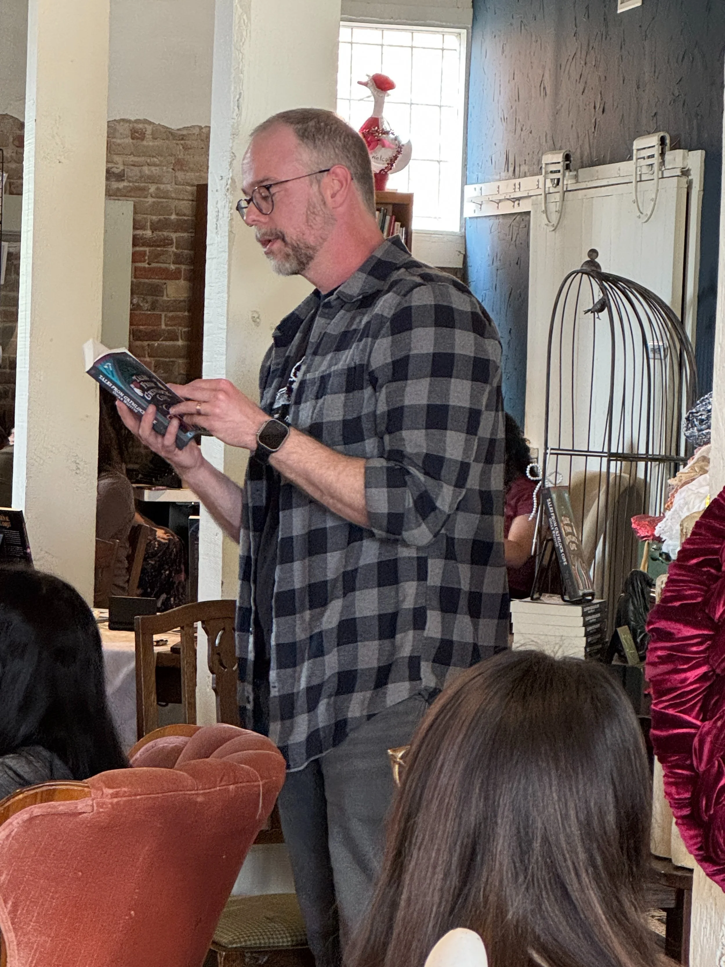 Short, family-friendly reading. Authors get 5 minutes each (you don’t have to use your full 5 mins but must be at least 3 mins) to read a passage from their book. After each reading is a 10 minute break to allow us to transition to our next author.
